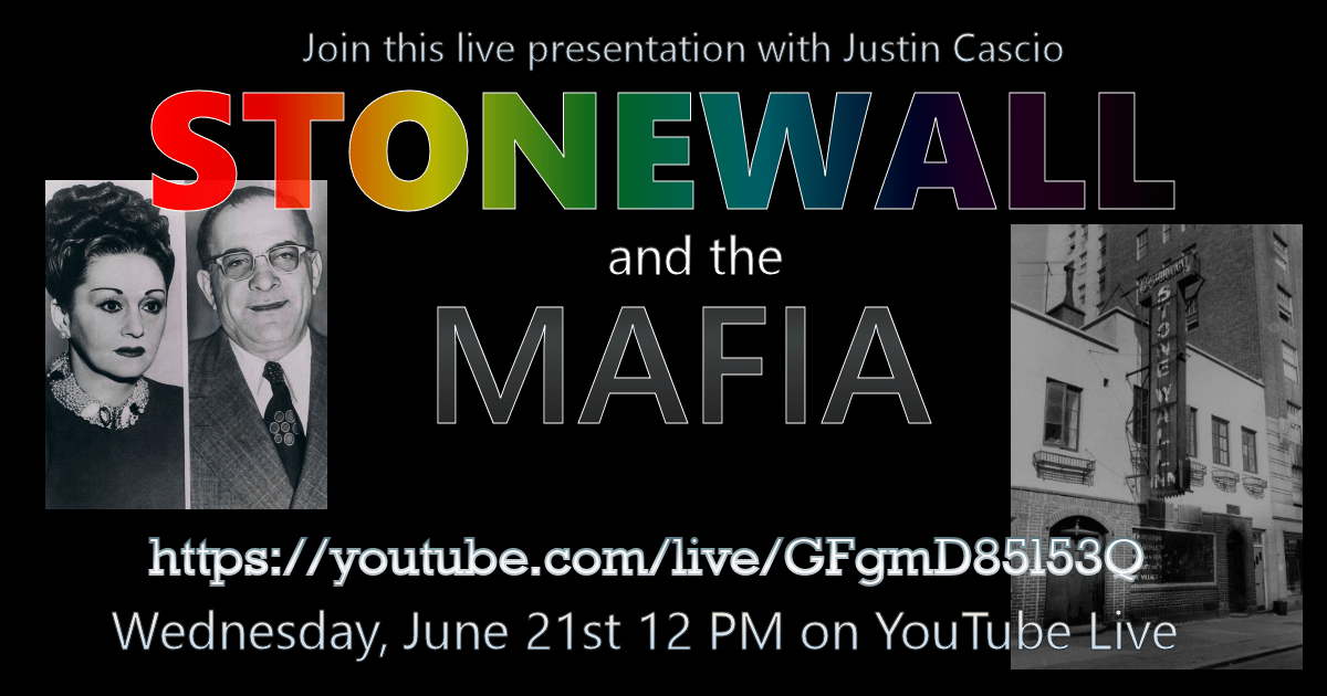 Hear the story of LGBTQ resistance in a whole new way. Mafia organization and methodology, corruption, Prohibition, and New York City’s political scene all play roles in the spontaneous uprising of the summer of 1969.