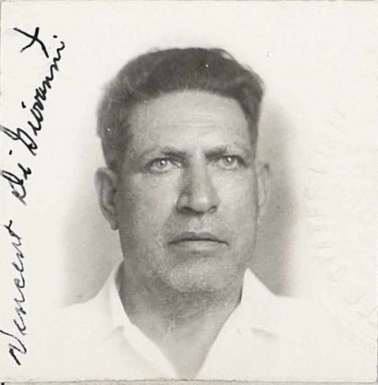 Vincent DiGiovanniโs photograph and his mark, a cross, as they appeared on the declaration of intention to naturalize he filed in December 1941. Vincent had blue eyes like two of his brothers, Paul and Pete.
